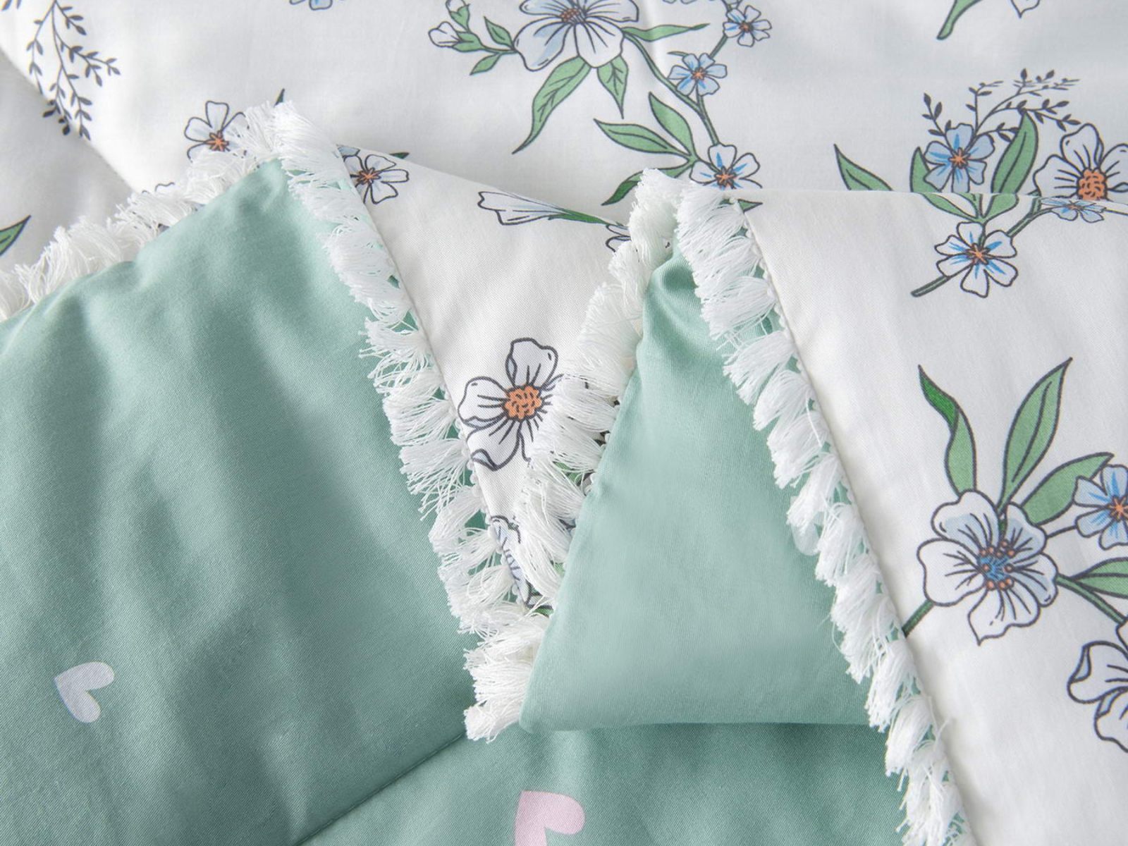 Особенность: кант на одеяле и наволочках декорирован бахромой.