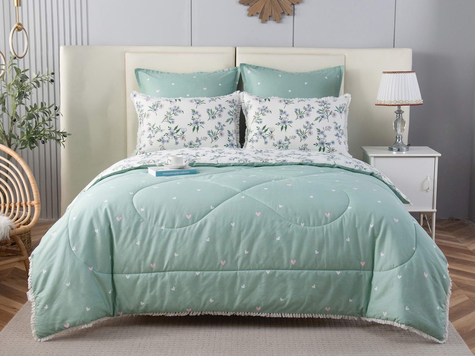 В комплекты комфортеров с одеялом Бернадетт входят наволочки, простыня и легкое всесезонное одеяло. Оцените это современное и очень удобное решение, которое идеально подходит тем, кто не любит возиться с пододеяльниками.