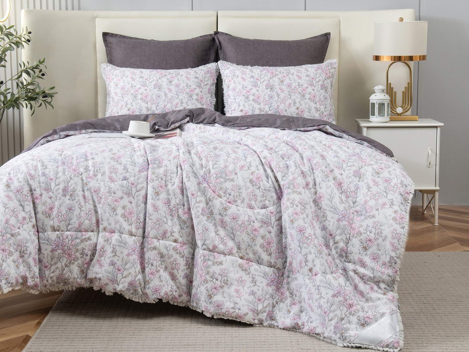 В комплекты комфортеров с одеялом Бернадетт входят наволочки, простыня и легкое всесезонное одеяло. Оцените это современное и очень удобное решение, которое идеально подходит тем, кто не любит возиться с пододеяльниками.