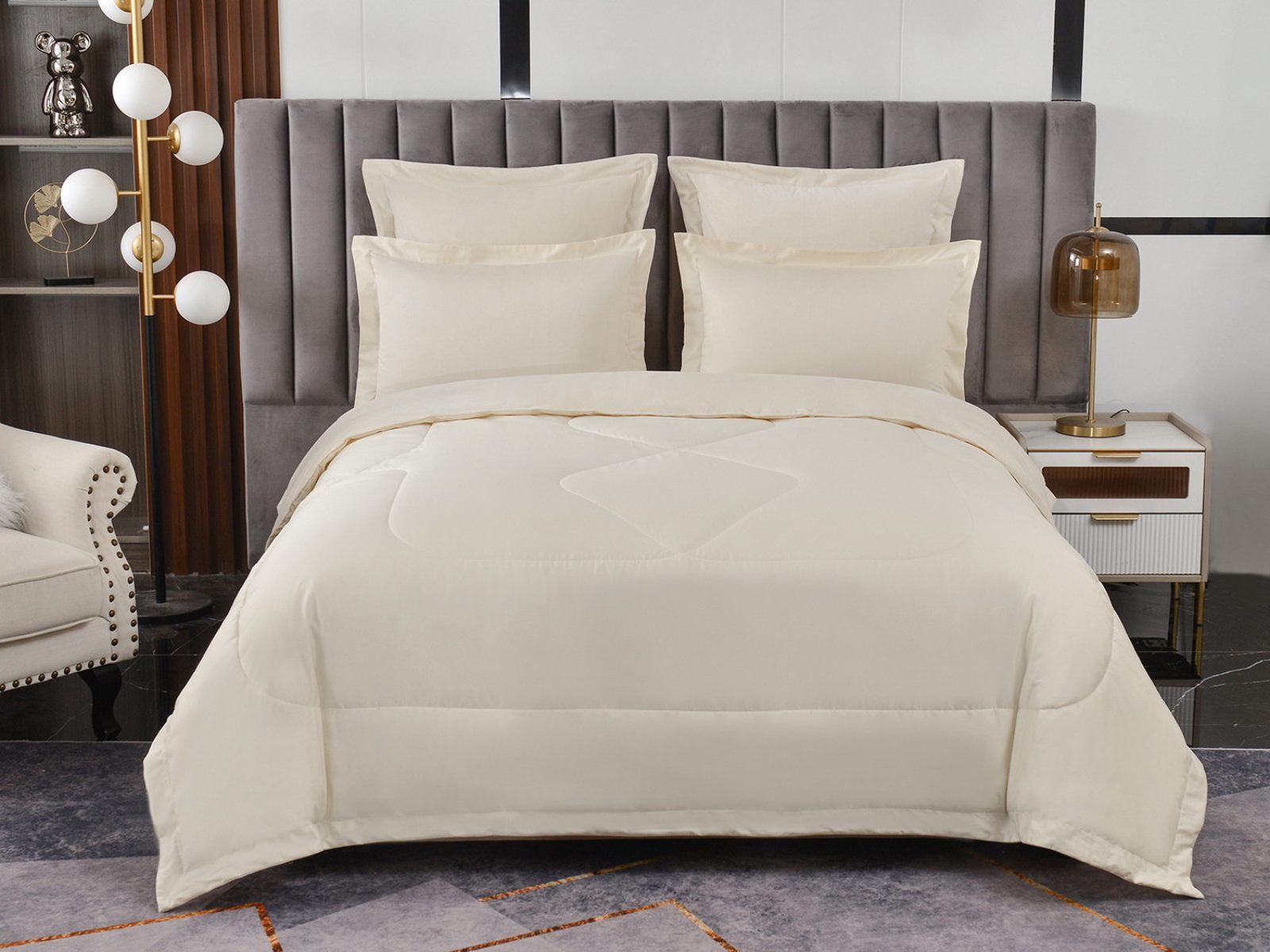 Изготовленный из качественной вискозы и мягкого хлопка трендовых цветов, комплект создаёт приятное ощущение на коже. Его экологичное наполнение из 100% эковолокна обеспечивает гипоаллергенные свойства, подарив вам спокойные и уютные ночи.