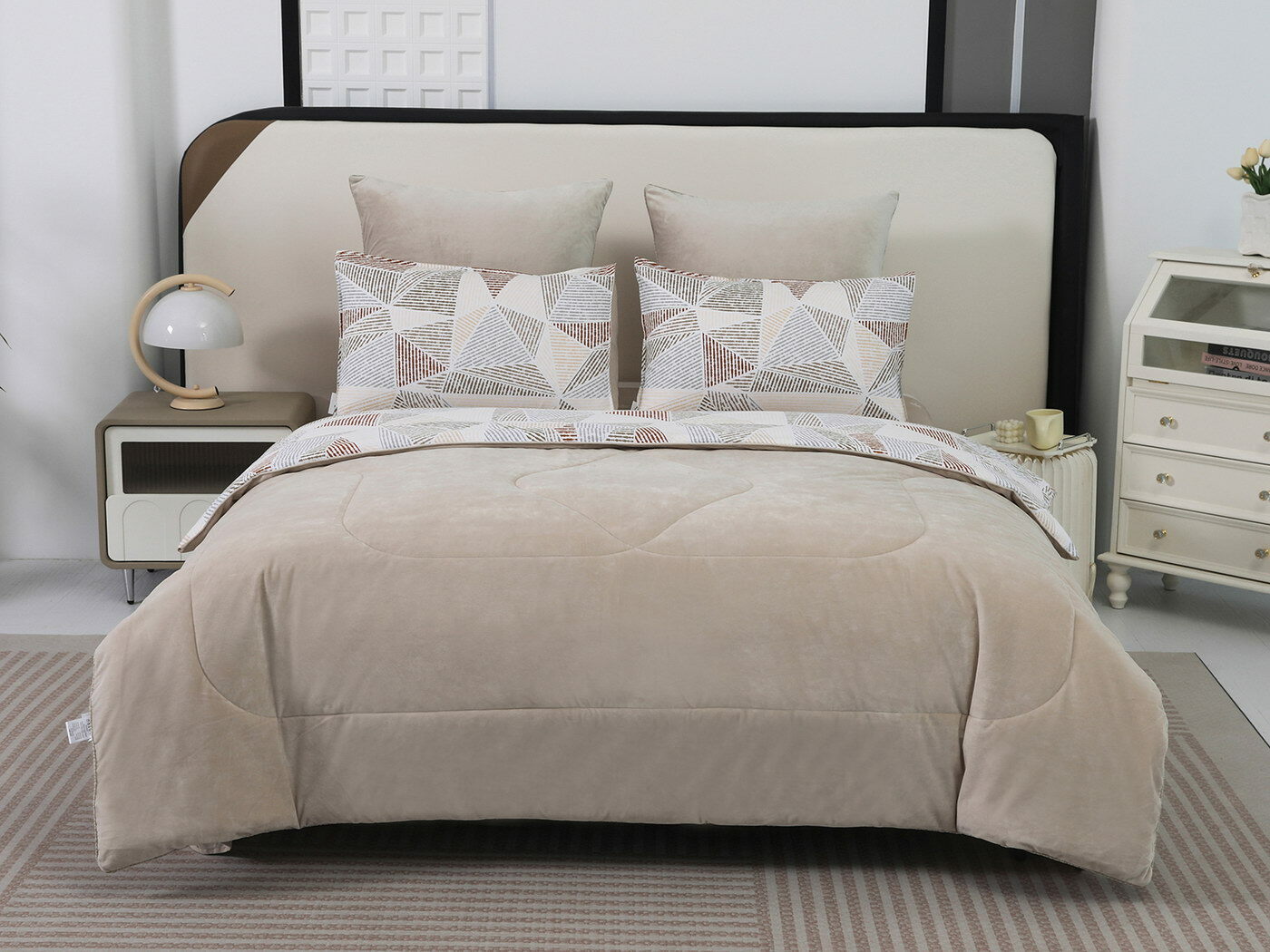 Новая коллекция комплектов «Роберто» с одеялом из однотонного велюра и принтованного сатина.