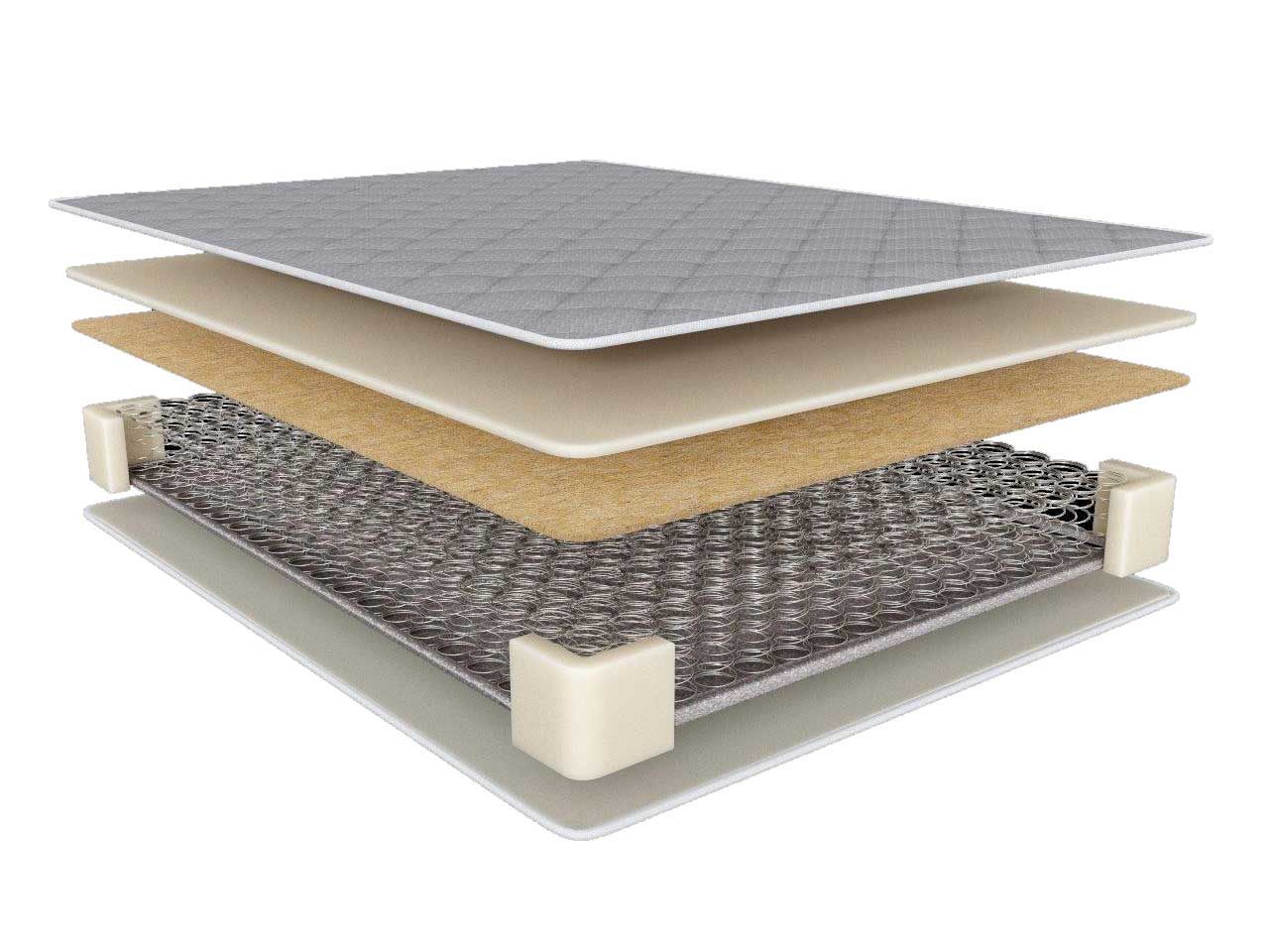 Пружины выполнены из высококачественной стали, соединяются между собой стальной высокоуглеродистой проволокой с узлами. Специально разработанные пружины сплетены в определенной последовательности. Метод, применяемый при этом, не дает им соприкасаться друг с другом, благодаря чему они не скрипят и не трутся.