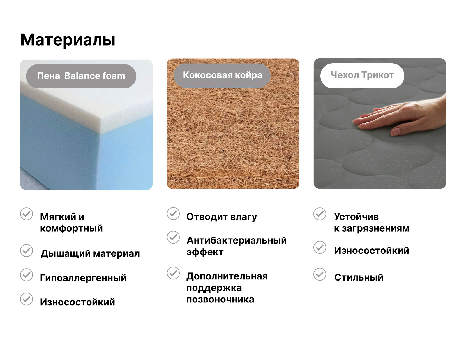 Кокос обладает антибактериальным эффектом, поэтому матрас будет дольше сохранять чистоту и свежесть.