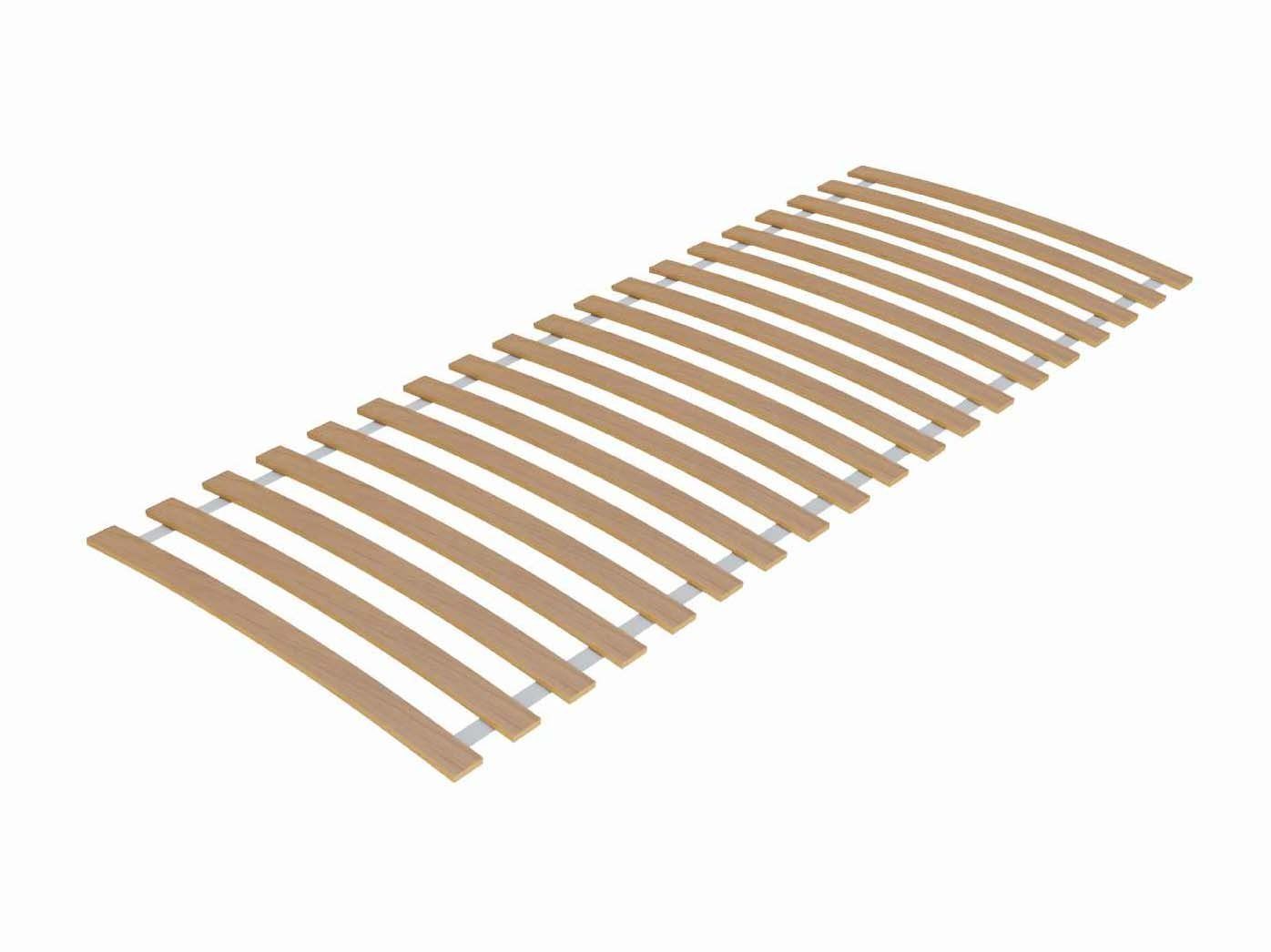 Конструкция основания выполнена из легкой прочной ленты и дополнена амортизирующими березовыми ламелями. Их изогнутая форма обеспечивает им гибкость и упругость, благодаря чему ламели могут пружинить при надавливании.