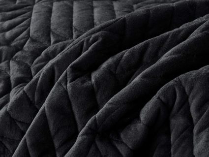 Покрывала выполнены в 10 оттенках: крем, мокко, пепельный, песочный, светло-бежевый, светло-серый, серый, темно-серый, чайная роза и черный. Стежка в виде геометрического орнамента подойдет к любому современному интерьеру. Из-за особого плетения, велюровая ткань покрывала отражает свет и красиво переливается при различном освещении.