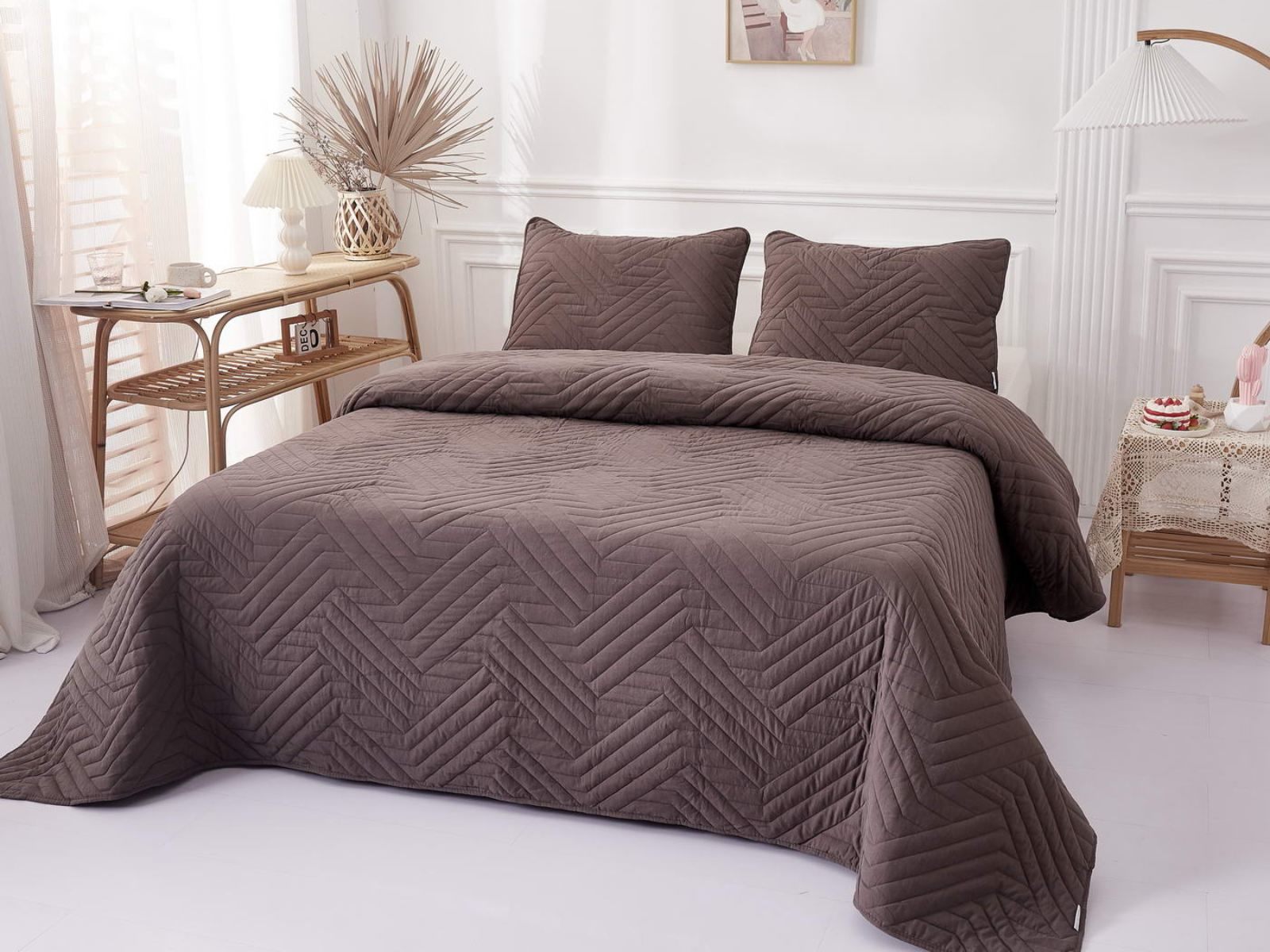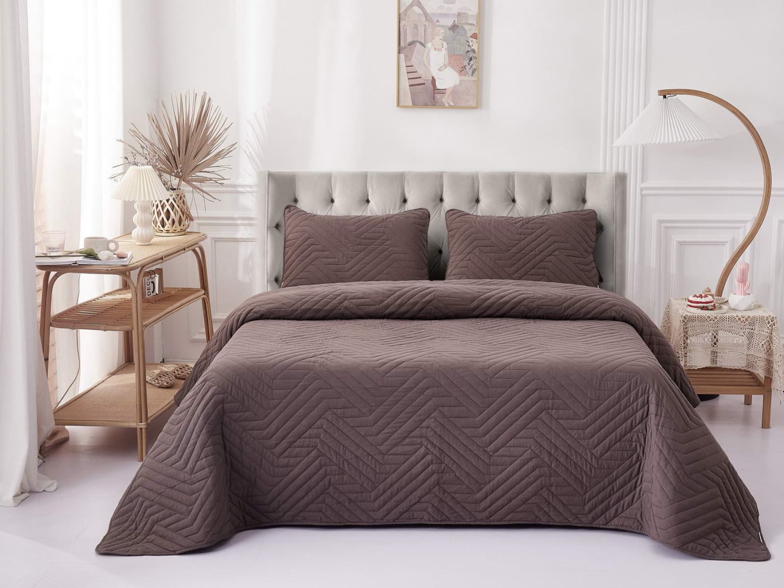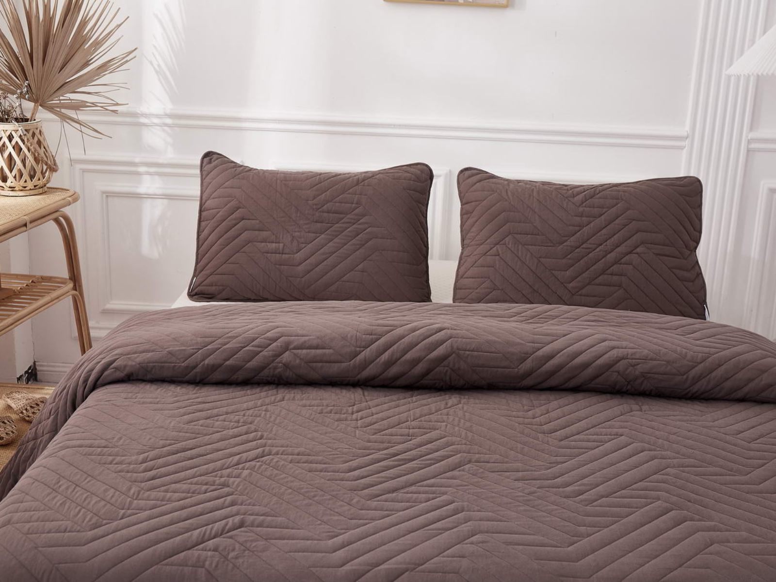 Покрывала Мориц украшены лаконичным геометрическим орнаментом. Сочетание углов и линий органично впишется в самые разнообразные интерьерные стили. Покрывала выполнены в восьми оттенках: крем, пудра, антрацит, бежевый, серый, шоколад, терракот, синий. Такая цветовая гамма не оставят никого равнодушным.